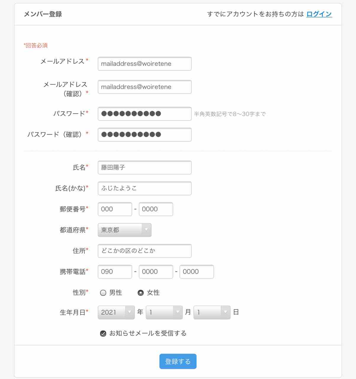 3.必要事項を入力して「登録する」をクリック