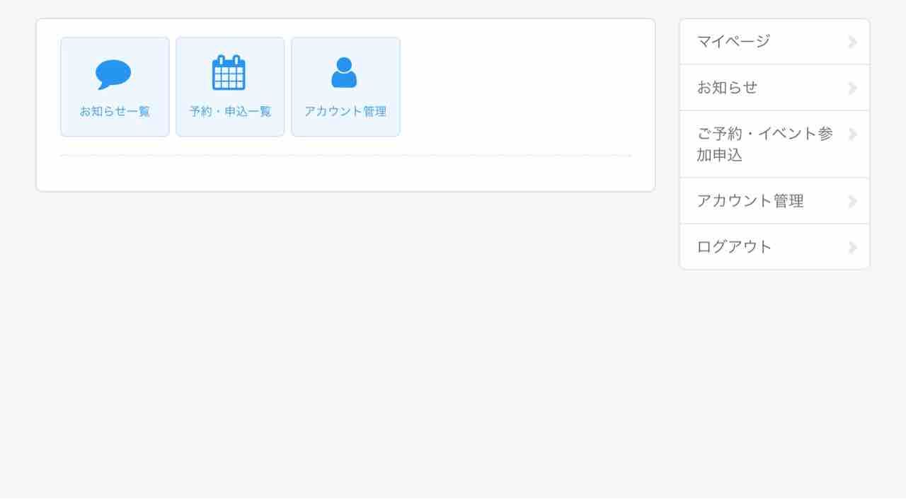 キャンプやハーフデーなどがスタートすると、マイページで予約済みの会期の確認などができます。