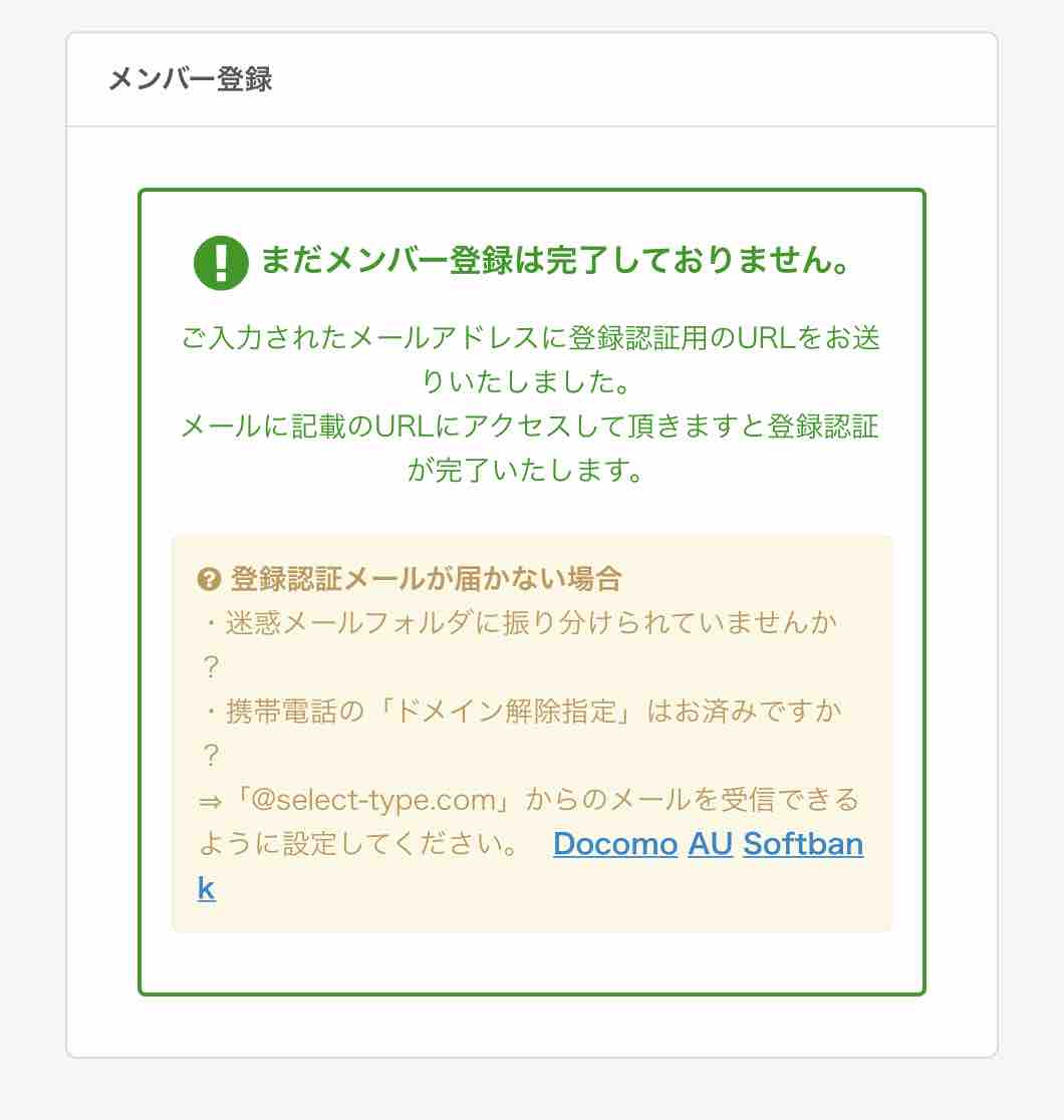 ※フリーメール(Gメールなど)で登録する方は、迷惑メールに自動振り分けされていないかチェックしてくださいね。