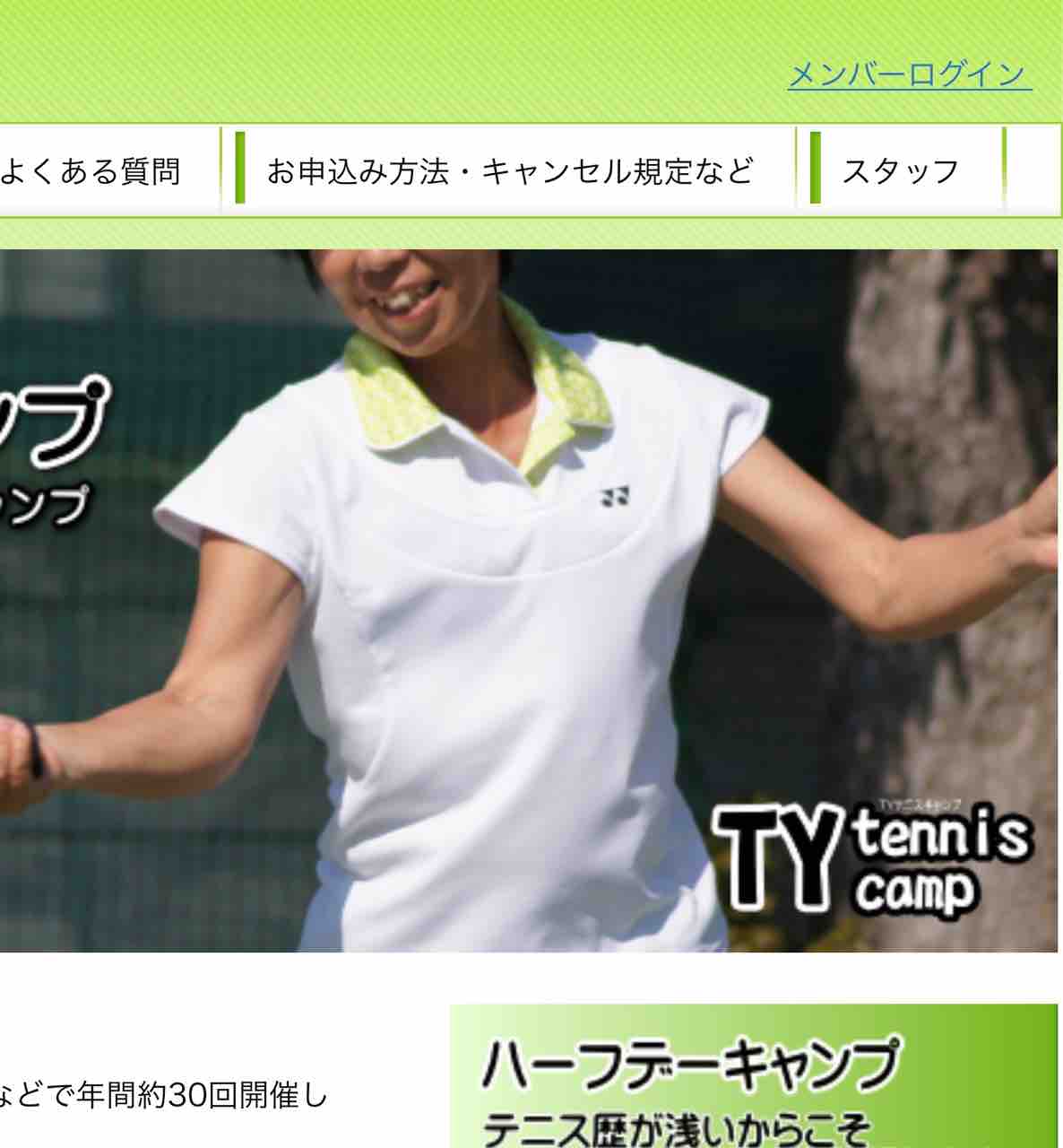 1.TYテニスキャンプのWEBサイトの「メンバーログイン」リンクをクリック